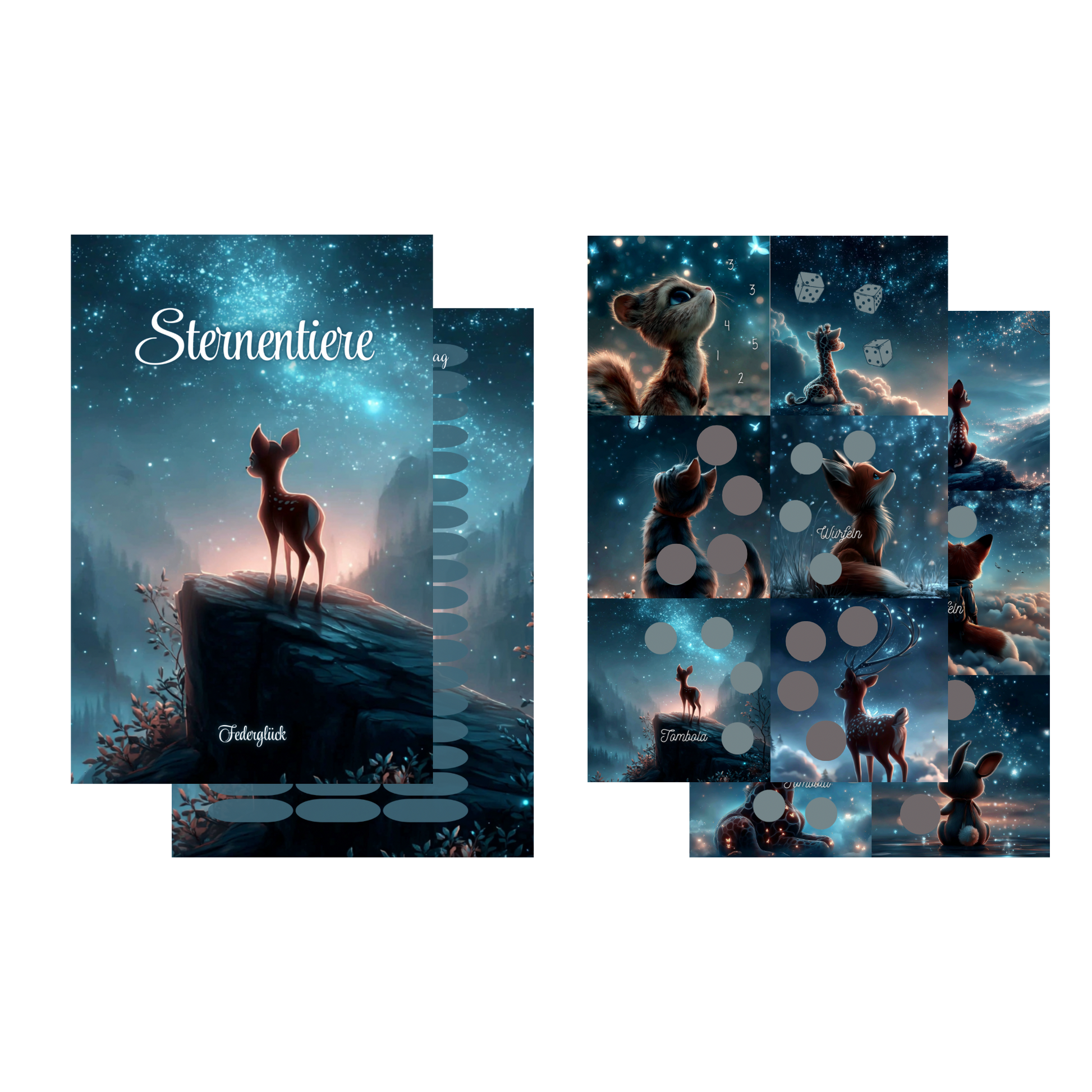 In der Welt der Sternentiere finden sich Papier, Sterne und ganz, ganz viel Magie. Welche Materialien ein Tier begleiten, erfährst du in der jeweiligen Beschreibung.